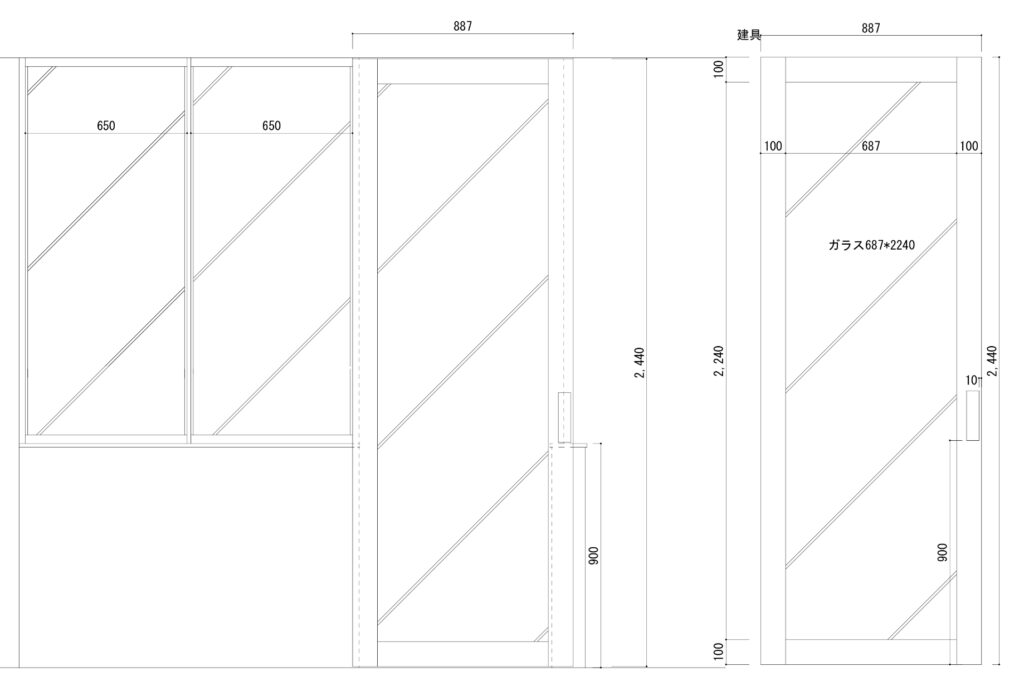 使用したのは「強化ガラス」と特注建具
